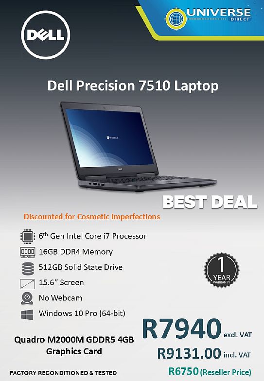 BD PREC 7510 I7 2.7/32GB/512SSD/W10P